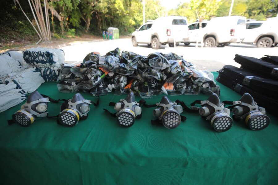 O governador Wilson Lima entregou, na tarde desta quarta-feira (05/11), novas viaturas que irão apoiar as atividades da Operação Tamoiotatá e do programa Floresta em Pé, que atuam no combate ao desmatamento e às queimadas no Amazonas. Além dos 16 veículos, também foram entregues 1.255 equipamentos para ampliar a estruturação do trabalho dos 153 brigadistas, que atuam no interior do estado, contratados pelo programa.