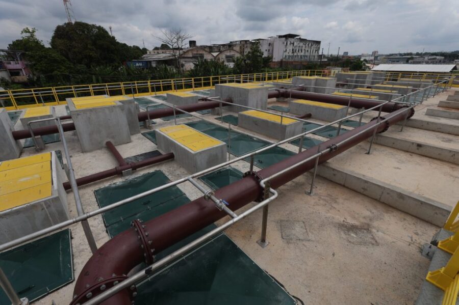 O Governo do Amazonas tem avançado de forma consistente em obras de saneamento por meio do Prosamin+. Em 2021, foi inaugurada a ETE Waldir Brito (Educandos), com capacidade de 26 milhões de litros/dia e investimento de R$ 48,4 milhões, beneficiando 192 mil pessoas e elevando o tratamento de esgoto em Manaus de 18% para 26%.