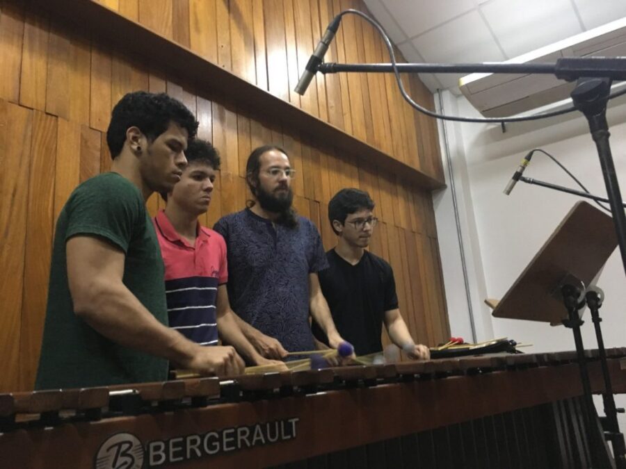 Braga fala que o repertório vai desde a música clássica, onde as faixas 5, 6 e 7 contém obras de Johann Sebastian Bach; composições dos alunos do curso de Música da UEA, como a faixa ‘Acarí’, de Célio Vulcão. “A formação também toca standards de jazz, como Blue Bossa ou Afro Blue, que são obras do repertório da música improvisada do jazz, e a gente fez nosso próprio arranjo. Essas partituras estão no nosso site. Temos também peças tradicionais para a formação de grupo de percussão, como o Akadinda, que é uma composição para marimba, toda escrita na partitura, onde são três percussionistas na marimba “, afirma.