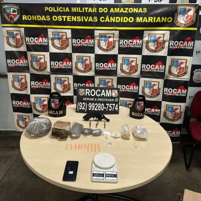 A Rondas Ostensivas Cândido Mariano (Rocam) prendeu um homem com uma arma de fogo e diversas porções de drogas na tarde de terça-feira, 26 de agosto, no bairro São Francisco, zona sul de Manaus. A prisão aconteceu após uma denúncia anônima.