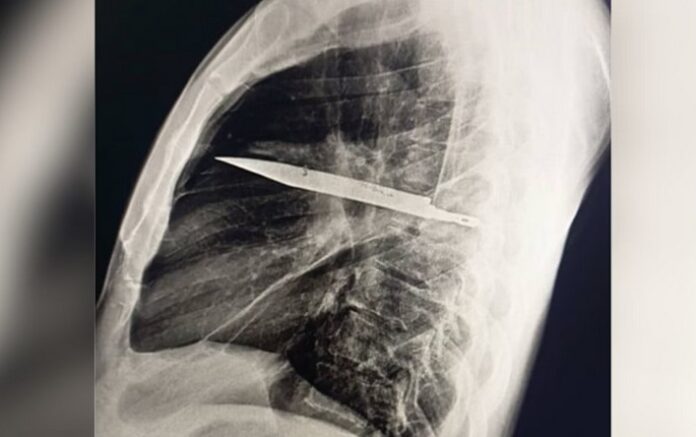 De acordo com o Journal of Surgical Case Reports, o paciente não apresentava sintomas típicos que poderiam indicar a presença da faca em seu peito. Os sinais dele estavam normais, sem febre, tosse, dificuldade de respirar ou dor no peito, e foi surpreendido com o diagnóstico médico.