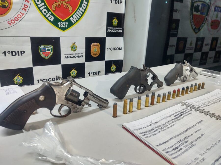 No local, durante a abordagem feita pelos agentes, foi encontrado um revólver calibre 38 com cinco munições. De acordo com o capitão Fabrício Almeida, os policiais questionaram a origem do material.