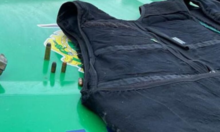 Com o criminoso a polícia apreendeu coletes balisticos e uma arma com munições. Todo o material foi apresentado no 14° Distrito Integrado de Polícia (Dip), onde o caso foi registrado.