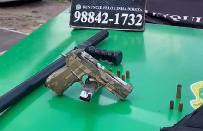 Uma denúncia anônima levou a equipe da polícia militar até a comunidade, informando que havia um criminoso armado no local, fazendo ameaças aos moradores.