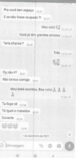 Em resposta aos assédios sofridos, a servidora pediu demissão. “Tenho princípios, tenho valores, e acima de tudo, me respeito como mulher. Admiro e respeito sua mãe e sua esposa que está grávida e logo terá sua filha. Preciso do trabalho? Preciso” Mas suas atitudes hoje na lancha em querer me tocar e sabe lá quais mais eram suas intenções, não importa, mas são inadmissíveis”, dispara Kamila em uma mensagem ao agressor, comunicando seu desligamento.