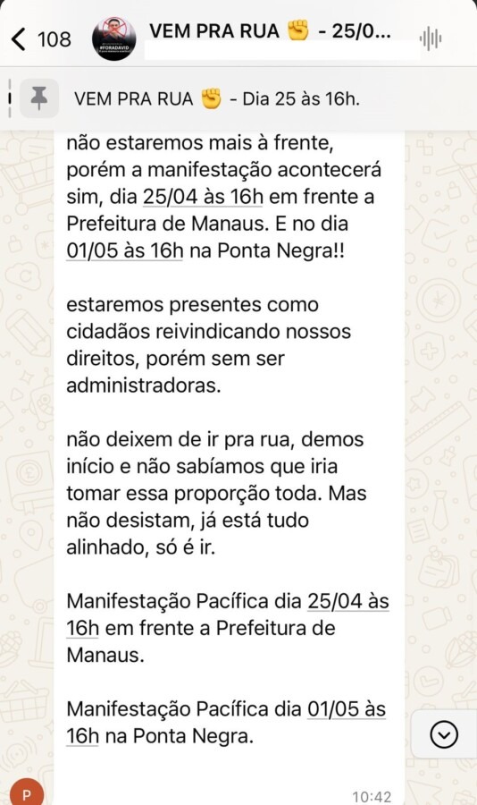 A ideia de David e seus aliados é de convencer os órgãos a esvaziar a atos que pedirão o impeachment do prefeito, usando barricadas, ameaças e e intimidação contra os organizadores do evento.