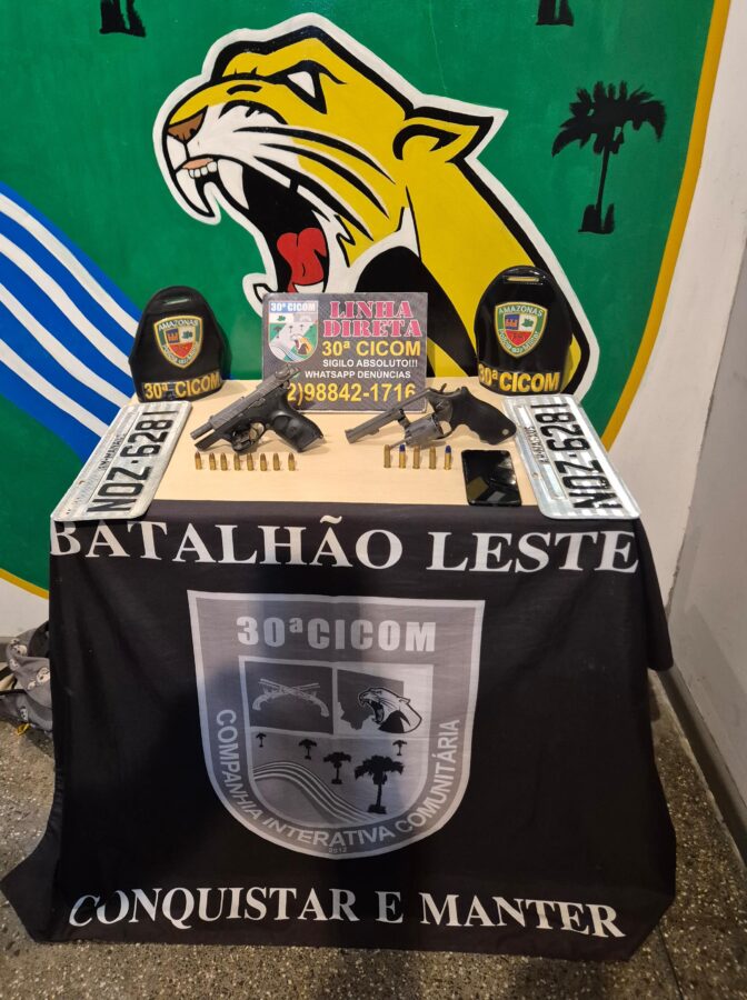 A 30ª Companhia Interativa Comunitária (Cicom) da Polícia Militar prendeu André, apontado supostamente como irmão de João Branco, líder de uma organização criminosa, e outro indivíduo no bairro Valparaíso, zona leste de Manaus. A dupla foi detida com uma pistola 9mm e um revólver calibre .38.