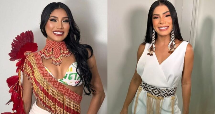 Do outro lado está Marciele, de 32 anos, Cunhã-poranga do boi Caprichoso há quase uma década. Natural de Juruti, no Pará, vive em Manaus há 16 anos. Influenciadora digital e empreendedora, cresceu em uma família ligada à agricultura e à produção de farinha, tendo passado a infância em contato direto com a floresta.