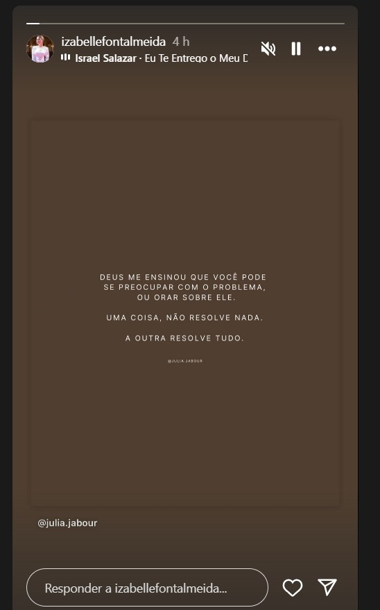 Izabelle era frequentemente vista em posts de suas redes sociais, realizando reuniões com secretários municipais, lenda a bíblia (de cabeça para baixo) e mostrando que é uma esposa exemplar, a influenciadora fechou sua conta no Instagram.