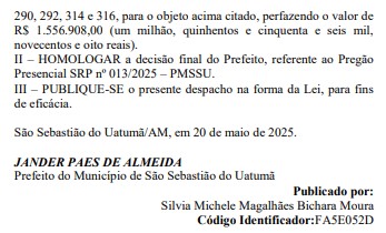 Jander Paes de almeida (UB), prefeito de São Sebastião do Uatumã no interior do Amazonas, vai gastar mais de R$ 9,3 milhões na compra de medicamentos em quatro empresas distintas.