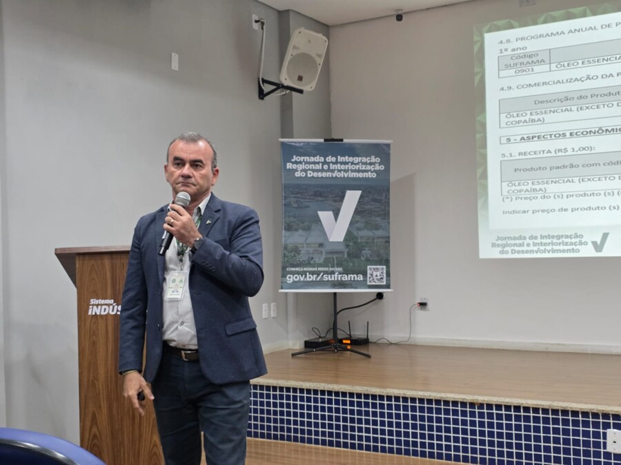 Encerrando a programação técnica, o coordenador de Análise de Projetos Industriais e de Serviços da Suframa, José Roberto Sena, realizou oficina com orientações para a elaboração de projetos industriais com base em matéria-prima regional.