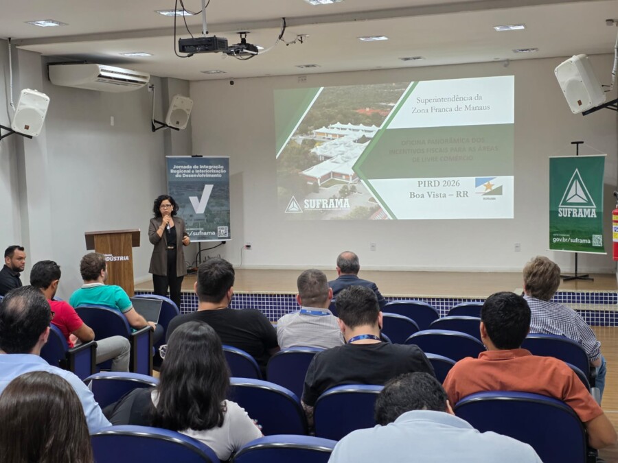 A programação técnica da Jornada de Integração Regional e Interiorização do Desenvolvimento, realizada nesta quarta-feira (25) no auditório do Centro Amazônico de Fronteiras da Universidade Federal de Roraima (CAF/UFRR), em Boa Vista (RR), reuniu representantes da Superintendência da Zona Franca de Manaus (Suframa) e instituições parceiras.