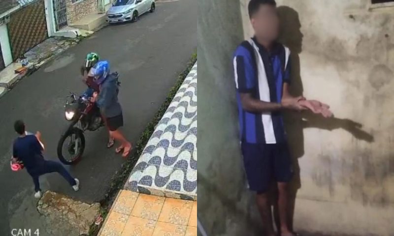 Um jovem foi assaltado na manhã da última segunda-feira (11/08) por volta das 8h, na zona leste de Manaus. O crime, que foi registrado por câmeras de segurança, mostra dois criminosos em uma motocicleta abordando a vítima e levando seu celular. O jovem fugiu do local em desespero.