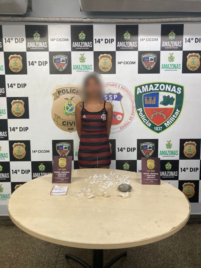 Manaus (AM) – As equipes de investigação do 14º Distrito Integrado de Polícia (DIP), da Polícia Civil do Amazonas (PC-AM), prenderam, em flagrante, nesta sexta-feira (16), por volta das 10h, Antonelly Samanta Oliveira Barbosa, de 18 anos, por posse de substâncias entorpecentes. A prisão ocorreu no conjunto Amazonino Mendes, bairro Novo Aleixo, zona norte de Manaus.