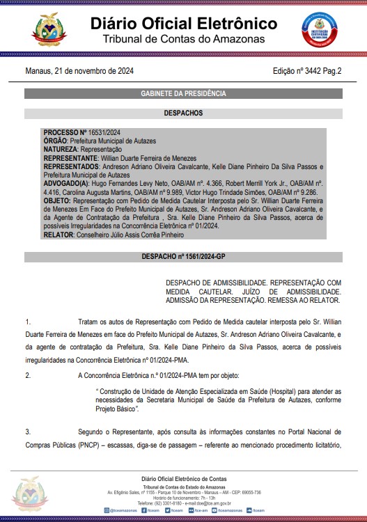 O Tribunal de Contas do Estado do Amazonas (TCE-AM), havia proibido o prefeito de Autazes Andreson Cavalcante, de realizar novas licitações no município, por estar em fim de mandato e deve repassar o comando da cidade para o prefeito eleito em 2025.