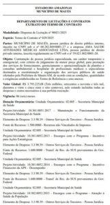 De acordo com o Diário Oficial dos Municípios (DOM), a empresa AMA SAÚDE ATIVIDADES MÉDICAS ASSOCIADAS LTDA, vai receber da Prefeitura de Maués o total de R$ 3.793.225,08 (três milhões, setecentos e noventa e três mil, duzentos e vinte e cinco reais e oito centavos), para gerenciamento e operacionalização de plantões e consultas ambulatoriais e hospitalares no município.