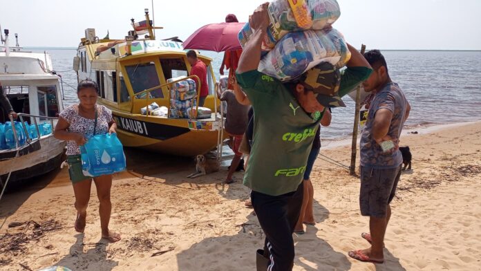 A Prefeitura de Manaus entregou cestas básicas e água potável para aproximadamente 1.100 famílias ribeirinhas, nos três primeiros dias da segunda fase da operação “Estiagem”, iniciada nesta semana. A ação ocorreu de 14 a 16/11, em 28 comunidades às margens do rio Negro.