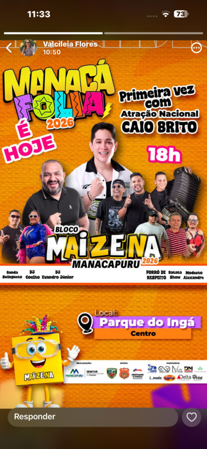 A cidade de Manacapuru entra oficialmente no clima de carnaval com a realização do Manacá Folia 2026, evento que promete reunir foliões neste sábado, a partir das 18h, no Parque do Ingá, região central do município.