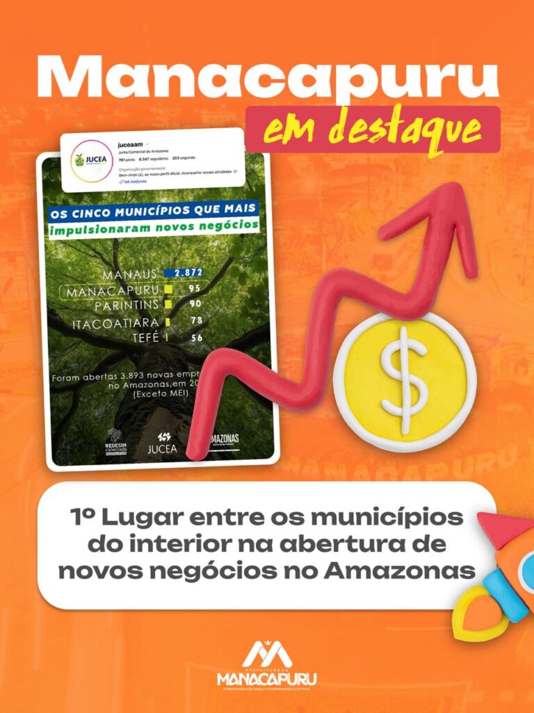 Manacapuru volta a se destacar no cenário econômico do interior do Amazonas. De acordo com dados divulgados pela Junta Comercial do Estado do Amazonas, o município aparece entre as cidades que mais abriram empresas no mês de março, com 95 novos negócios formalizados, ocupando a segunda colocação no ranking estadual, atrás apenas de Manaus.