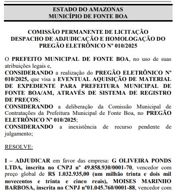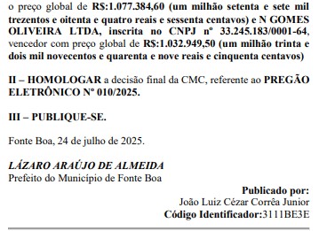 O prefeito Lázaro de Araújo de Almeida, conhecido como “Dr. Lázaro” (Republicanos), vai gastar mais de R$ 3,1 milhões na compra de material de expediente para atender as demandas da Prefeitura de Fonte Boa, no interior do Amazonas.