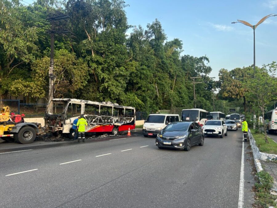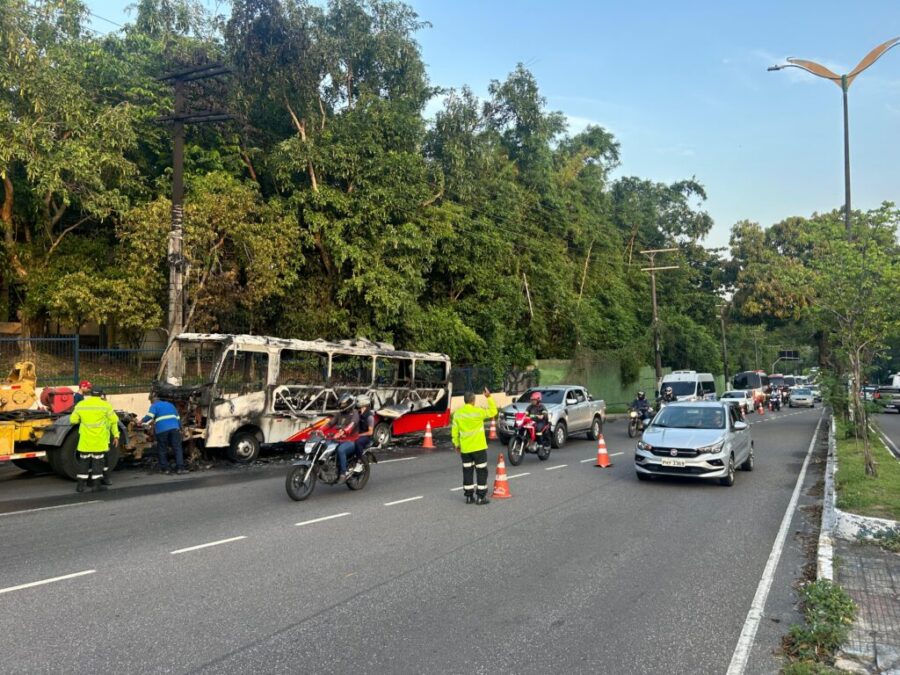 Micro-ônibus que faz rota para o Distrito é consumido pelo fogo em Manaus