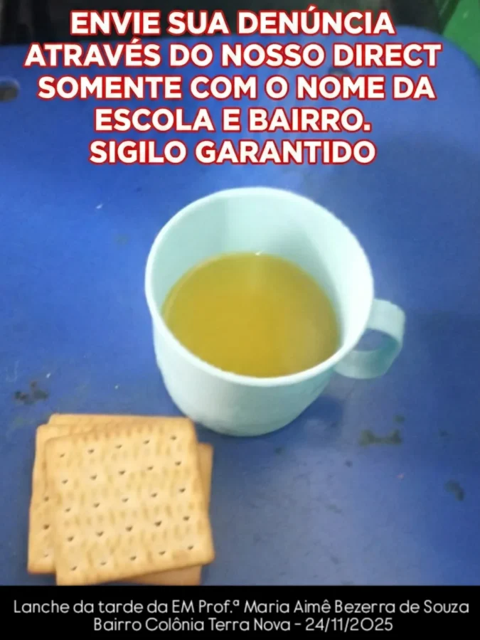 O grupo convoca pais, responsáveis e profissionais da educação que presenciem a situação a enviar denúncias com foto do prato (se possível) e nome da escola e bairro. O grupo garante o sigilo total dos denunciantes.