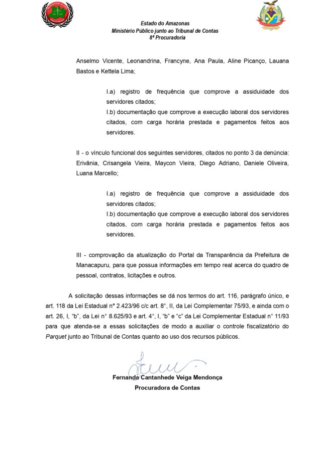 O MPC deu o prazo de 15 dias para que a gestora apresente documentos, mas já deve solicitar ao Tribunal de Contas do Estado do Amazonas (TCE-AM), uma investigação sobre as possíveis irregularidades: