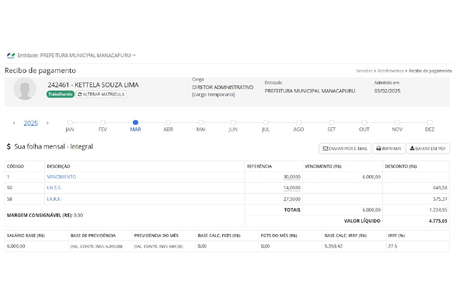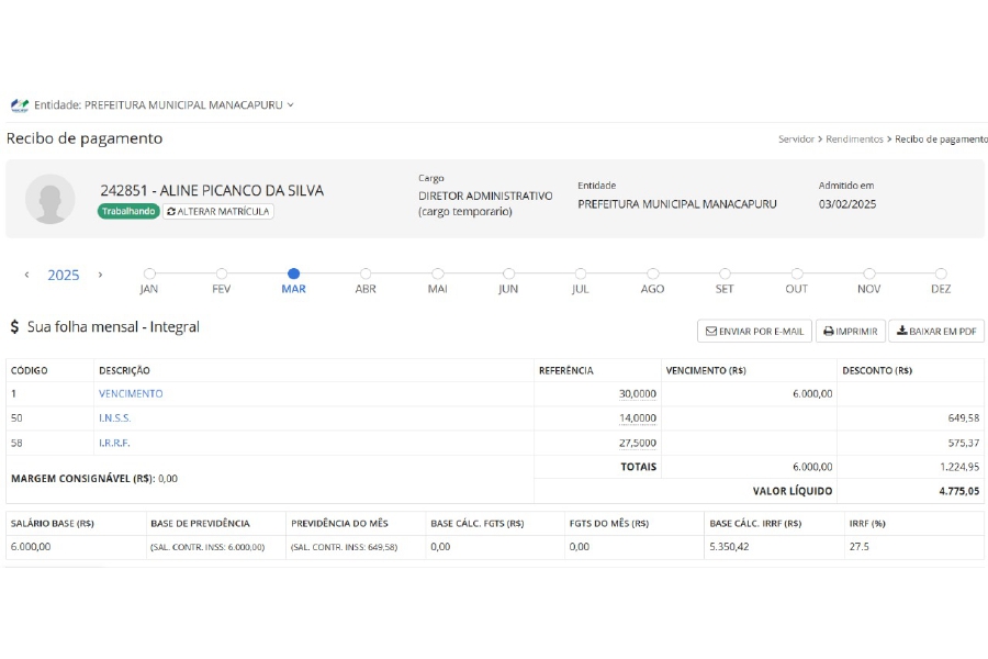 Além disso, o vínculo funcional de alguns funcionários com cargos comissionados dentro da Prefeitura de Manacapuru, possuem indícios de irregularidades.