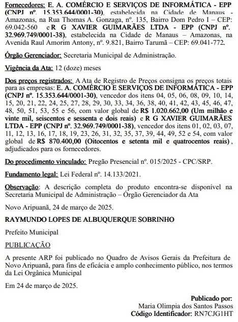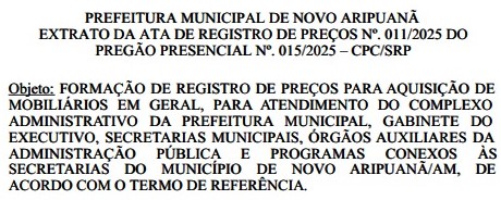 Os contratos não esclarecem quais serão os mobiliários adquiridos pela Prefeitura de Novo Aripuanã, em um contrato que tem uma vigência de 12 meses.