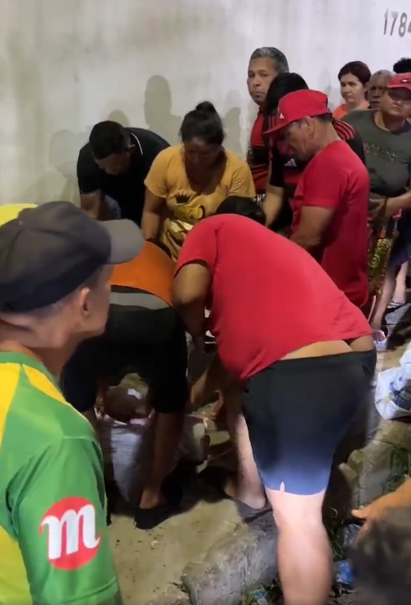 “Não recebemos nada. Ele fez a gente de palhaço porque a gente chegou as 13h da tarde aqui com criança. Pra quê ele fiz isso com nós? Por que ele não chegou pra nós e falou que não ia ter? Até essa hora a gente aqui!”, disse uma mulher revoltada.
