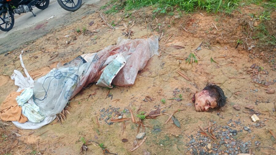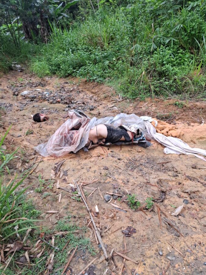 Populares que passavam pelo local encontraram o corpo enrolado com plástico e sua cabeça ao lado, acionando a Polícia Militar para o local. A vítima está trajada de bermuda e camisa preta, possui cabelos escuros e pode ser alguém desaparecido.