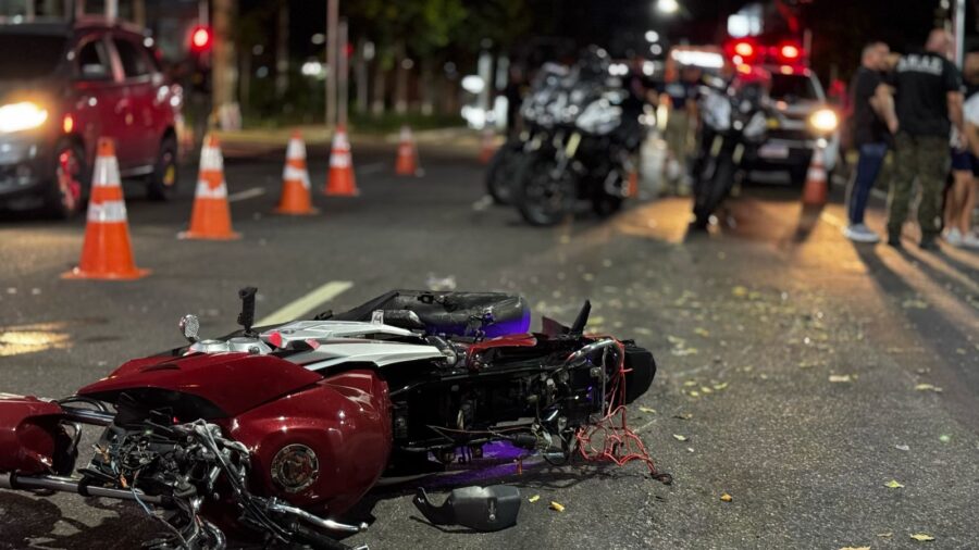 De acordo com testemunhas, o condutor da moto, que atuaria como entregador por aplicativo, teria avançado o sinal vermelho ao avistar a fiscalização. A suspeita é de que ele tentou evitar a abordagem por estar circulando com o veículo sem placa – uma irregularidade que, segundo relatos, teria sido provocada por um acidente anterior que danificou a identificação da motocicleta.