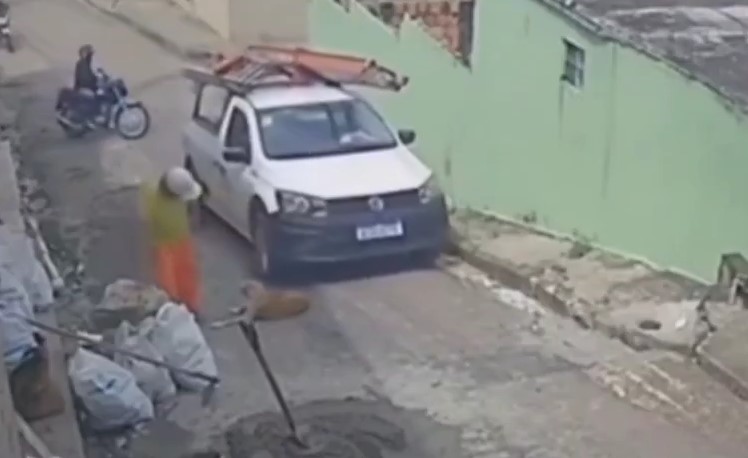 Um homem que trabalhava na rua acabou reclamando com o motorista que passou por cima do cachorro, o homem dá ré no carro e foge do local sem prestar socorro ao cachorro. Não há informações se o cachorro foi socorrido e sobreviveu.
