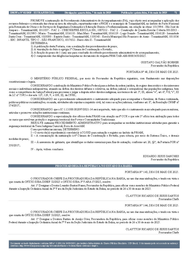 A Portaria Nº 11/2025 assinada pelo procurador da República Gustavo Galvão Borner, foi homologada no Diário Oficial do órgão nesta quinta-feira (8).