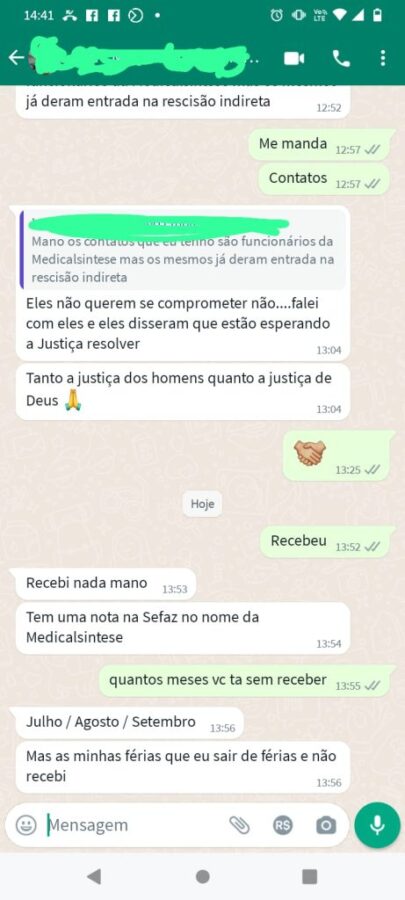 Ex-funcionários da empresa Madim Diagnósticos, Líder Serviços Médicos e Petro Serviços, afirmam que trabalharam para as empresas de Sérgio Chalub e só receberam o vale-transporte e alguns o vale-refeição.