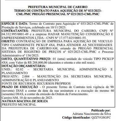 Enquanto o povo do Careiro Castanho sofre com a estiagem e a seca dos rios, o prefeito Nathan Macena vai gastar R$ 288 mil para andar pela cidade com uma caminhonete de luxo 4×4 tipo pick-up, para atender suas necessidades.