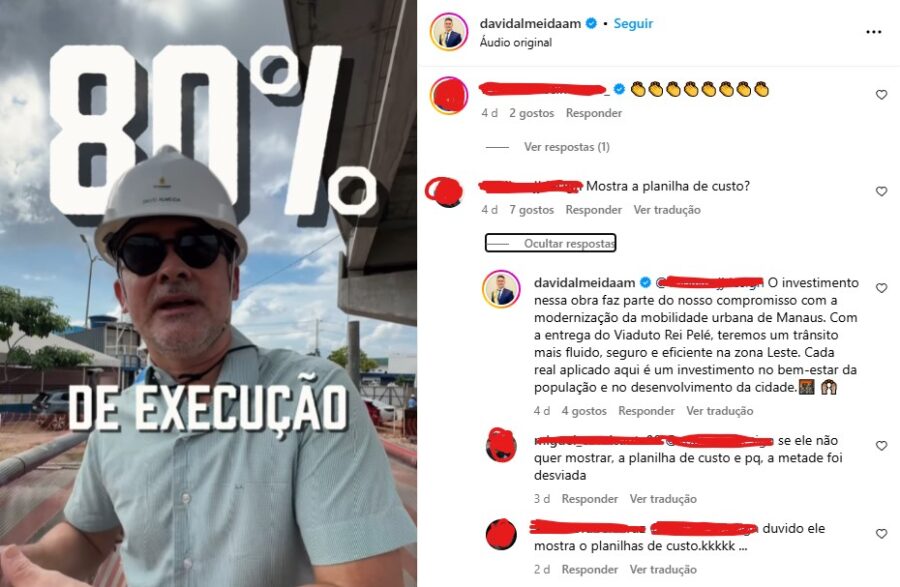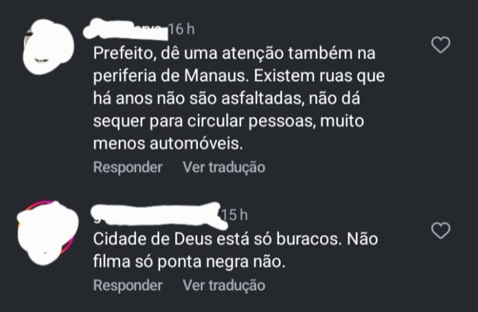No mesmo calçadão que foi criticado pela influenciadora e ex-bbb, David passeou com o senador Eduardo Braga (MDB), e logo recebeu uma exurrada de comentários negativos de manauaras, que cobraram melhorias em suas comunidade, ao invés do prefeito ficar fazendo politicagem.