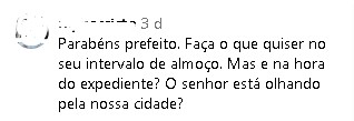 “Parece que o prefeito é prefeito da Flórida, a cidade vai muito bem obrigado kkkk”, disse ironicamente um internauta.