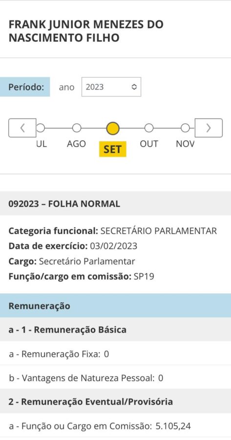 O advogado Frank Júnior Menezes de Nascimento que trabalhou para o parlamentar durante as eleições de 2022, está lotado no gabinete de Amom Mandel em Brasília, mas segundo a denúncia do MPF-DF, o advogado é responsável por processos pessoais do parlamentar na justiça amazonense, muito longe de seu local de trabalho ao qual foi designado.