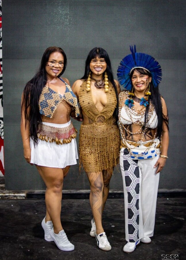 As tuxauas Ira Maragua, Jéssica Maragua e Giovana Borari estarão no último carro alegórico do desfile. A proposta da alegoria é apresentar uma releitura simbólica de Brasília sob a perspectiva dos povos indígenas, com o Congresso Nacional envolto por raízes, representando os povos originários como base estrutural do país.