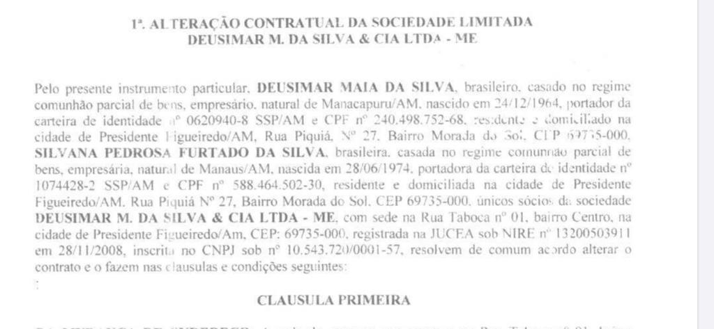 No registro da empresa, seu endereço está listado no bairro do Parque Dez, onde funciona o restaurante pertencente a família do marido da prefeita Patrícia Lopes.