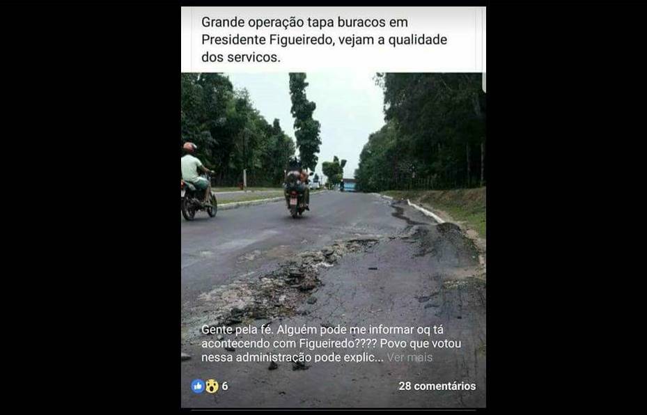 Moradores fazem diariamente diversas denúncias sobre a falta de infraestrutura de Presidente Figueiredo, que se afunda na lama e na buraqueira, tendo que os próprios munícipes fazer o trabalho já pago, e muito bem pago pela gestão Patrícia Lopes.