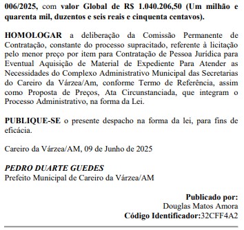 O material de expediente vai custar aos cofres públicos da Prefeitura do Careiro da Várzea, mais de R$ 1 milhão de reais e o contrato com seis empresas, já foi assinado pelo prefeito Pedro Guedes (PSD).