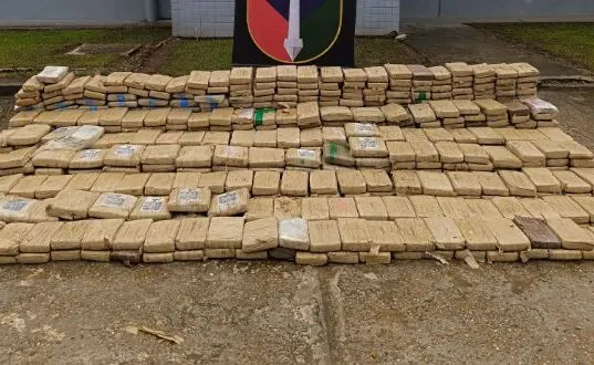 Durante a varredura na mata, a equipe localizou e apreendeu toda a carga de entorpecentes, avaliada em quase uma tonelada.