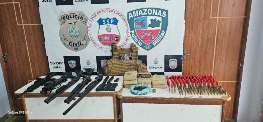 Uma operação da Polícia Civil do Amazonas resultou na prisão em flagrante de uma mulher de 22 anos por tráfico de drogas e posse de armas de uso restrito, na quarta-feira (23/07), no município de Jutaí, a 750 quilômetros de Manaus. A ação foi conduzida por agentes da 56ª Delegacia Interativa de Polícia (DIP), após denúncias anônimas.