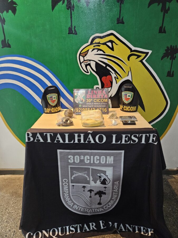 A Polícia Militar do Amazonas (PMAM), por meio da 30ª Companhia Interativa Comunitária (Cicom), apreendeu um tablete de oxi e porções de maconha, na segunda-feira (28/07), na comunidade Santa Inês, localizada no bairro Jorge Teixeira, zona Leste de Manaus.