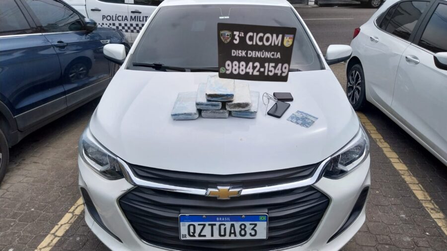 Durante a abordagem, o suspeito foi flagrado transportando a droga dentro de um veículo