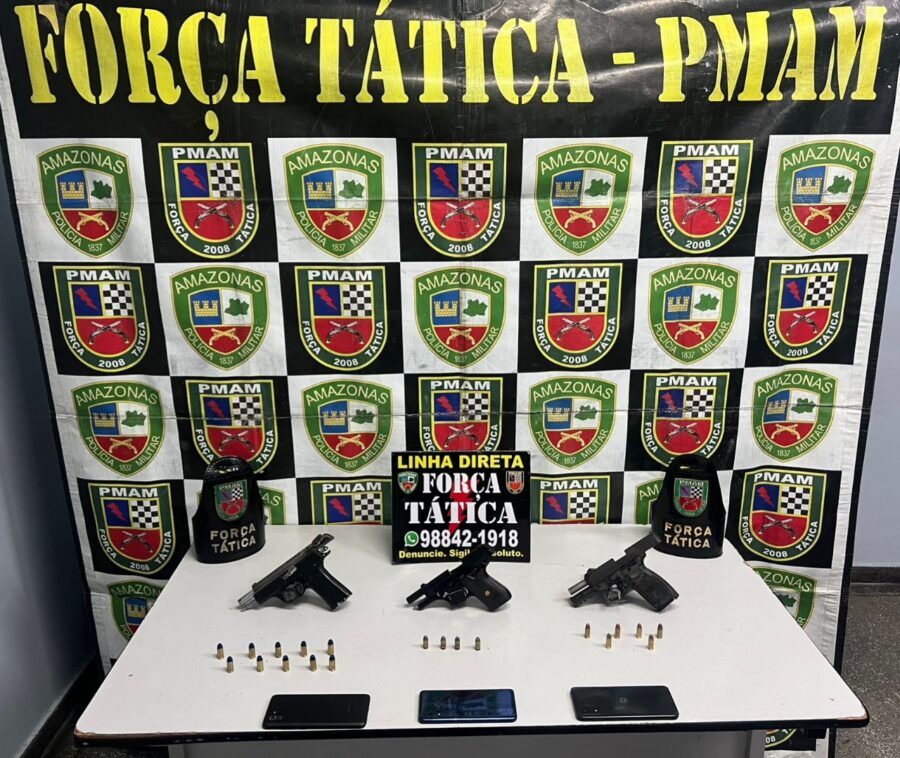 A Polícia Militar do Amazonas (PMAM), por meio da Força Tática, apreendeu três armas de fogo e 20 munições, durante ação efetuada na madrugada de quarta-feira (18/06), no bairro Cidade Nova, zona norte da capital amazonense.