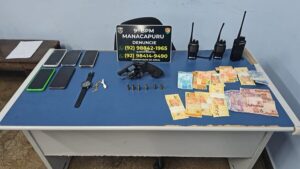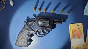 Durante a abordagem, um dos suspeitos, de 32 anos, foi flagrado com um revólver calibre 38 na cintura, que foi identificado como roubado. Ele alegou ser “vigilante do beco”, mas não tinha autorização para portar a arma.