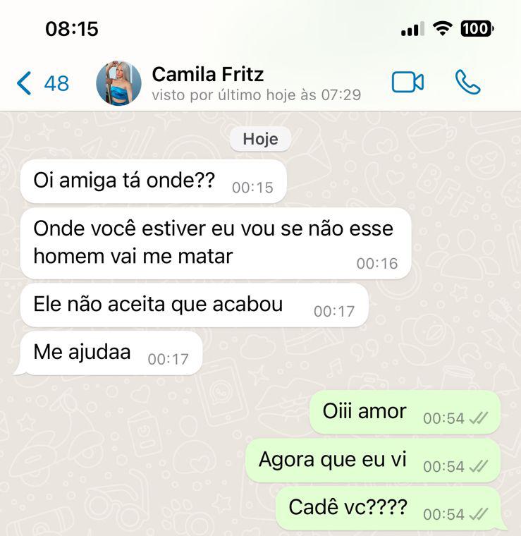 Antes do crime, Camila chegou a enviar uma mensagem de texto a uma amiga relatando o medo que tinha de ser morta por Olímpio, que não aceitava o fim do relacionamento.